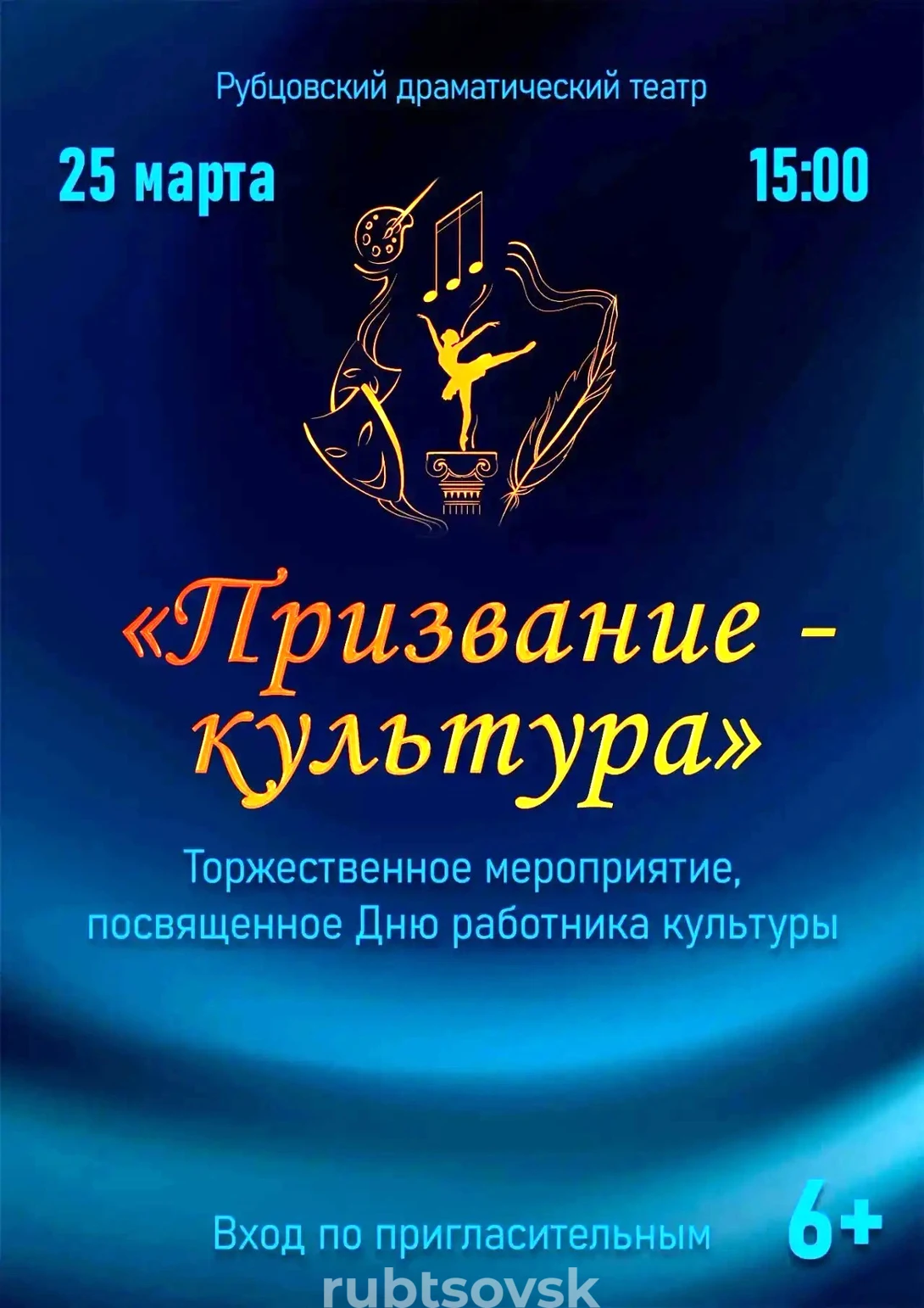 25 марта свой профессиональный праздник отмечают работники культуры. В этот день в Рубцовском драматическом театре состоится торжественная программа, на которой будут чествовать всех, кто причастен к этой сфере, кто дарит своё творчество, организует мероприятия и делает каждый праздник ярким и запоминающимся.